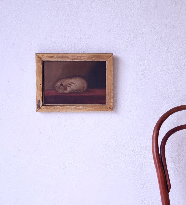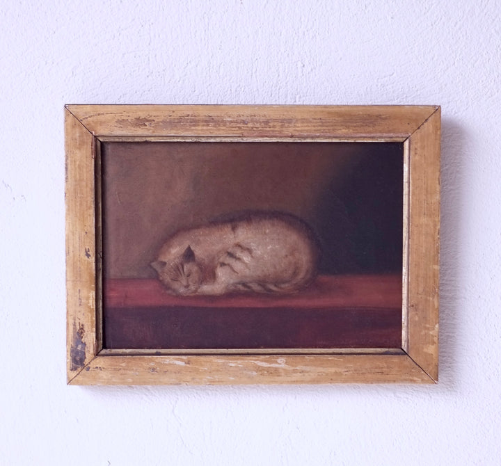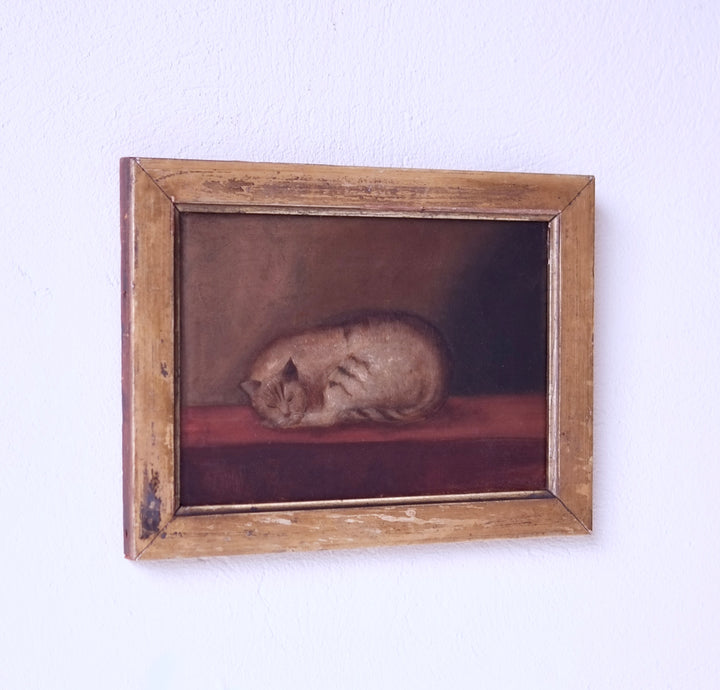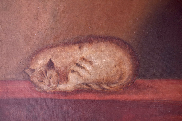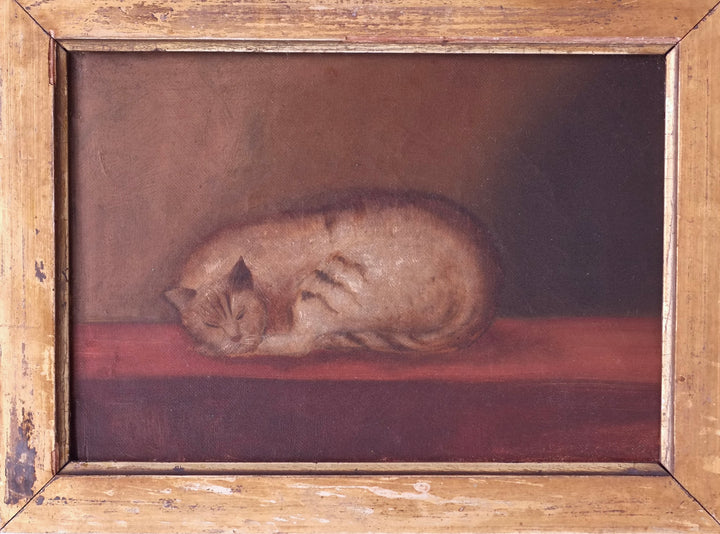 A 19th century English school oil on canvas of a sleeping cat.