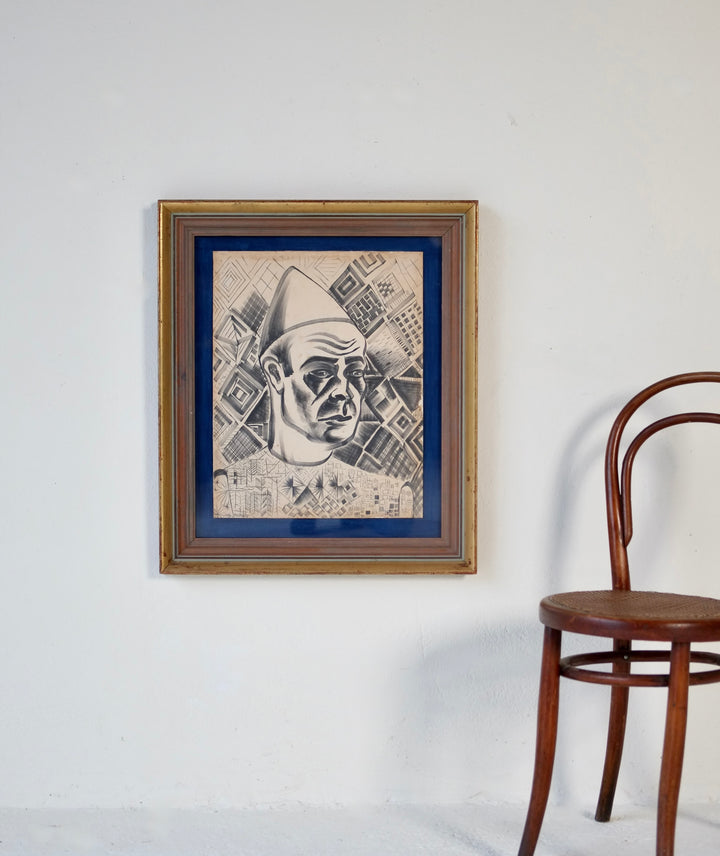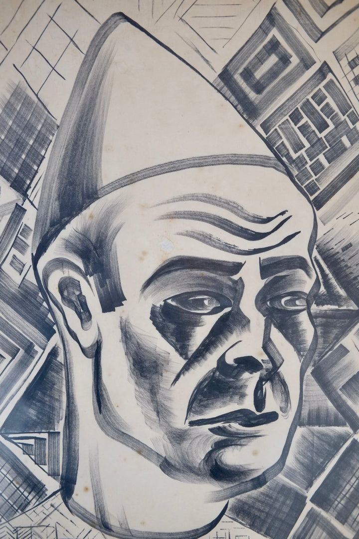 A pen and ink artwork titled "Clown II" by British artist John Banting (1902-1972).