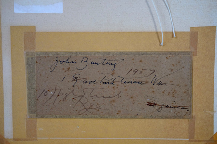 The son of a commercial bookbinder and a teacher, John Banting was born in Chelsea, London on 12 May 1902. He made drawings and poems under the influence of Vorticism at the age of eighteen. While working as a clerk, he attended life classes at Vincent Square art school under Bernard Meninsky (1921) and the free academies in Paris, including the Grande Chaumière and Colarossi's (1922). By 1925 he had established a studio in Fitzroy Street and was associated with the Bloomsbury group; he made designs for Leonard and Virginia Woolf's Hogarth Press and for the ballets Pomona (1929) and Prometheus (1936) at Sadler's Wells. He was notable for shaving his head (a response to premature hair-loss), and for his relationships with Nancy Cunard and the poet Brian Howard.
