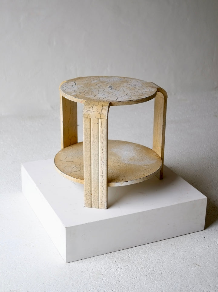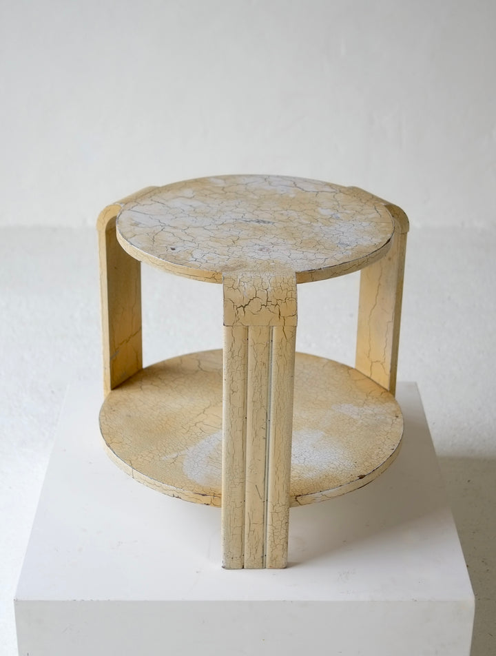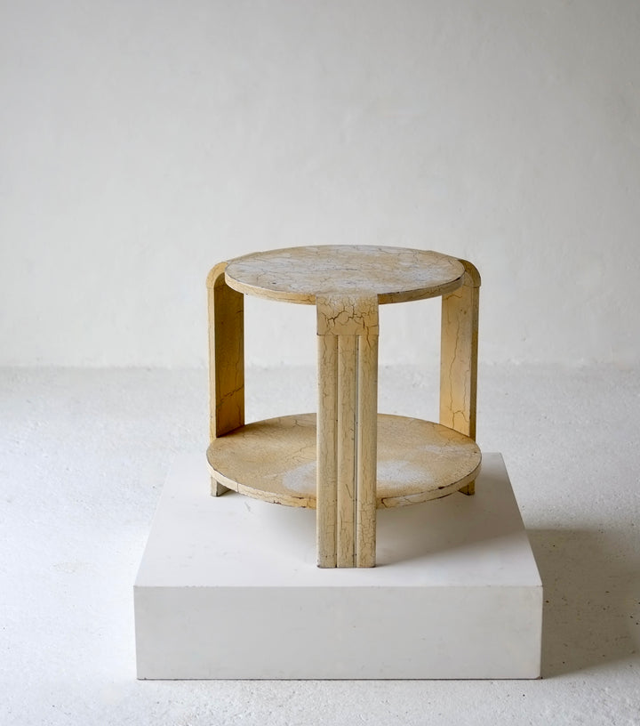 Art deco wooden side table featuring aged crackle effect paintwork.