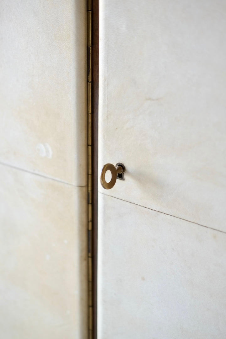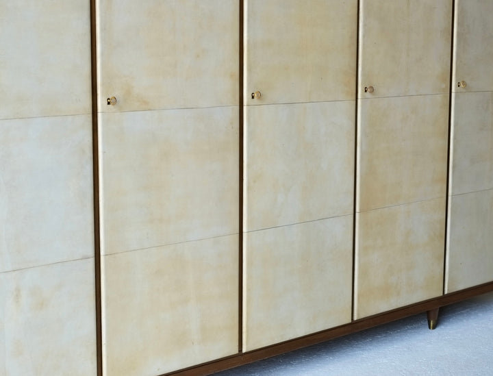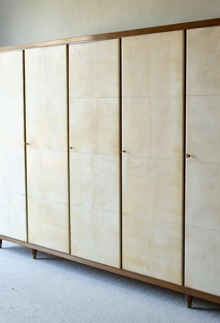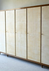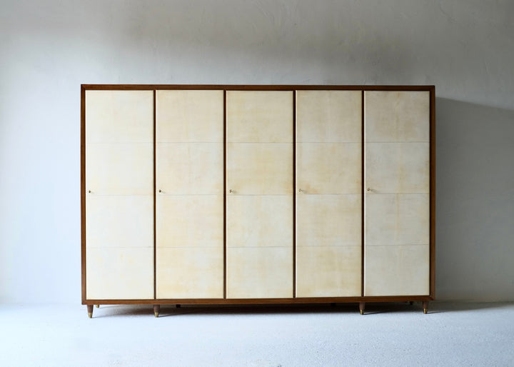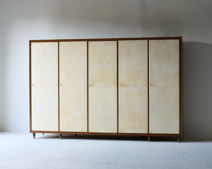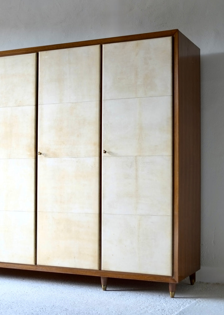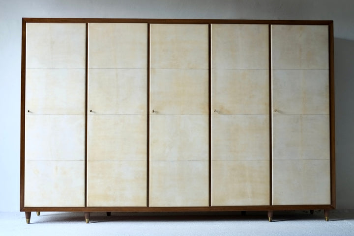 The wardrobe features numerous internal fittings including drawers, shelves and brass hanging rails. All doors have their original locking keys.