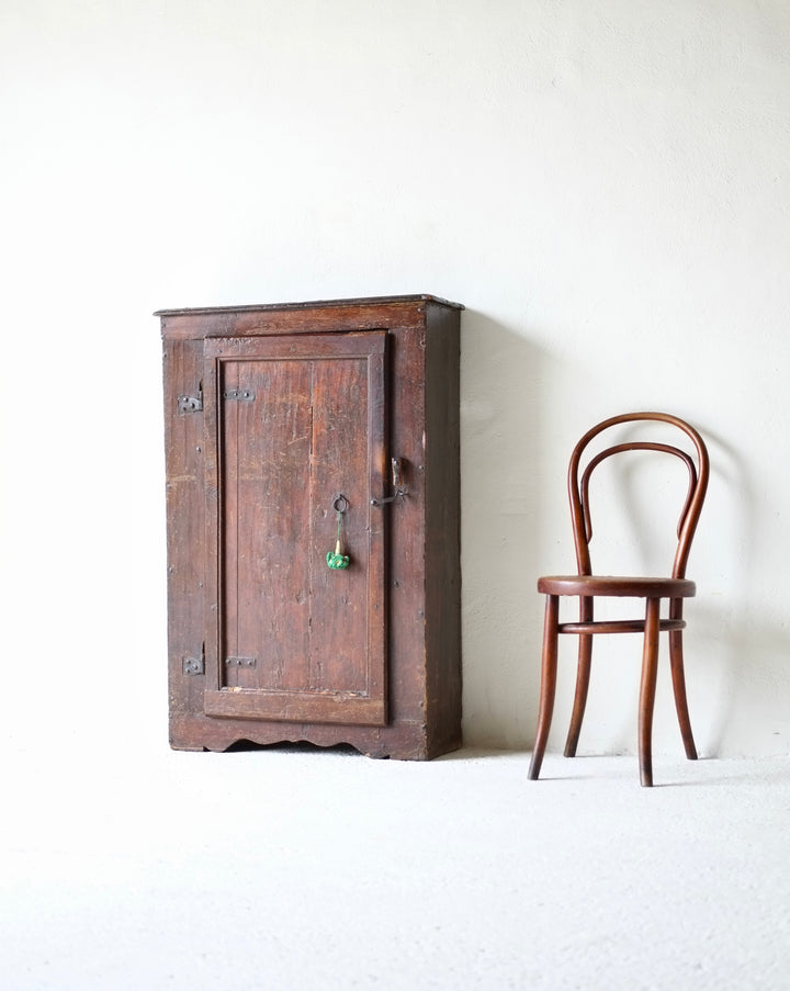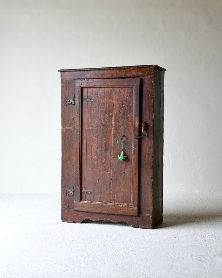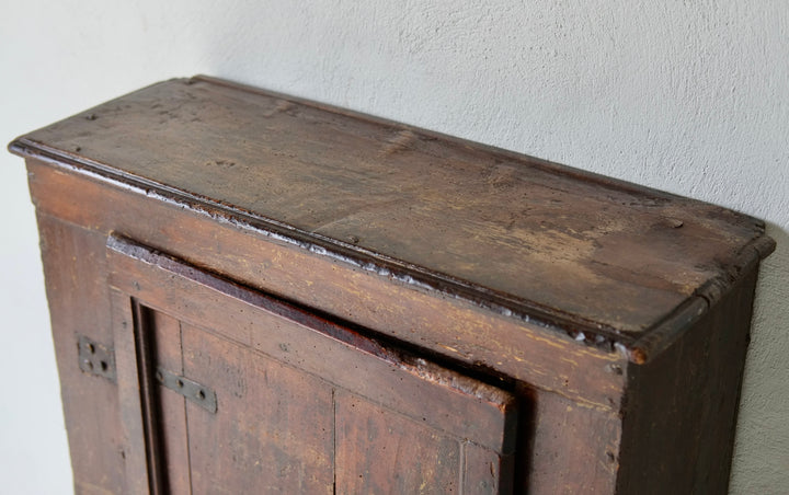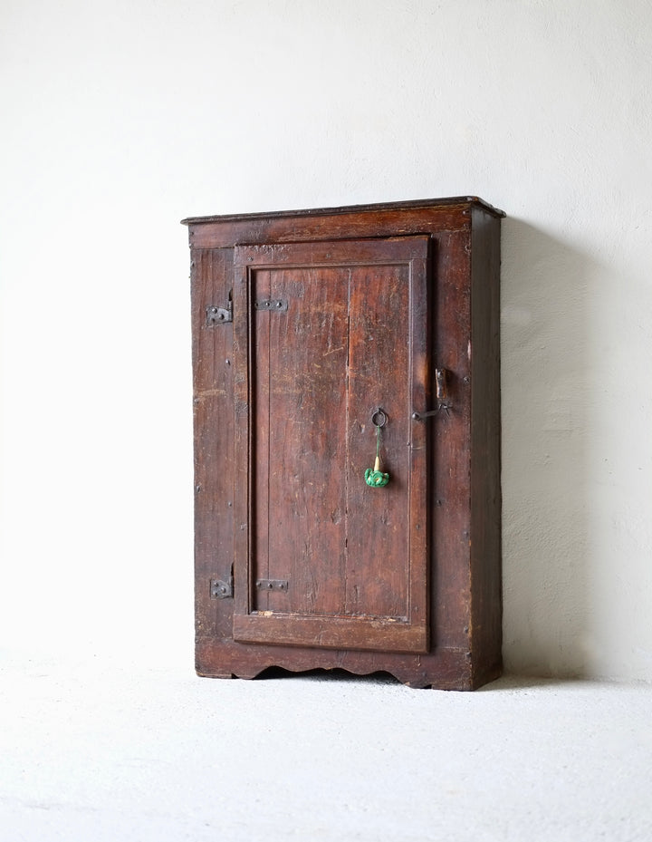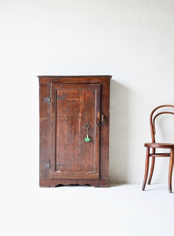 A rustic oak wood shelved 19th century cupboard from Umbria, Italy.