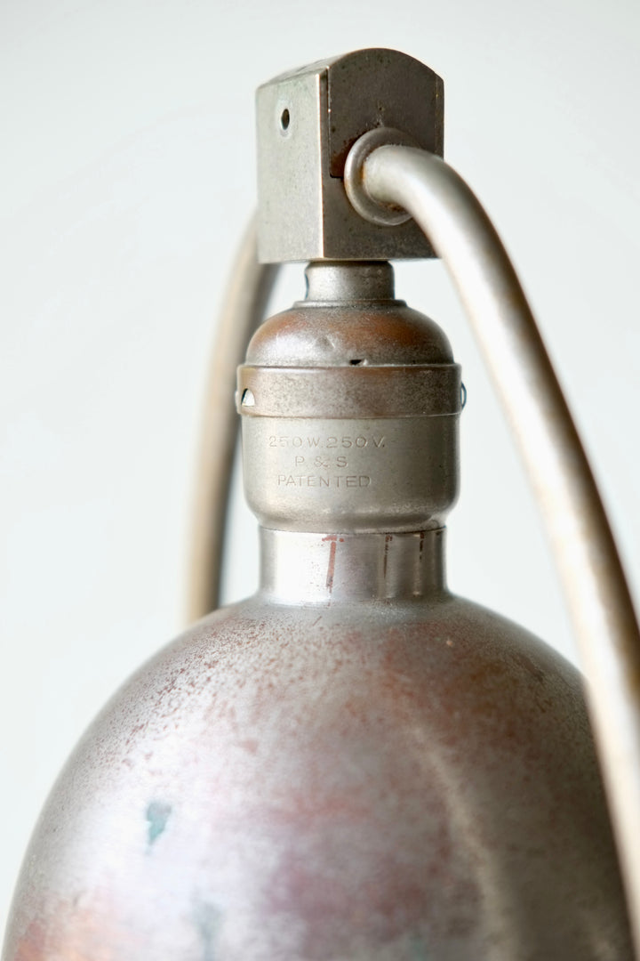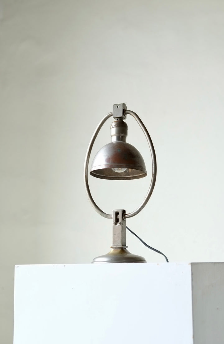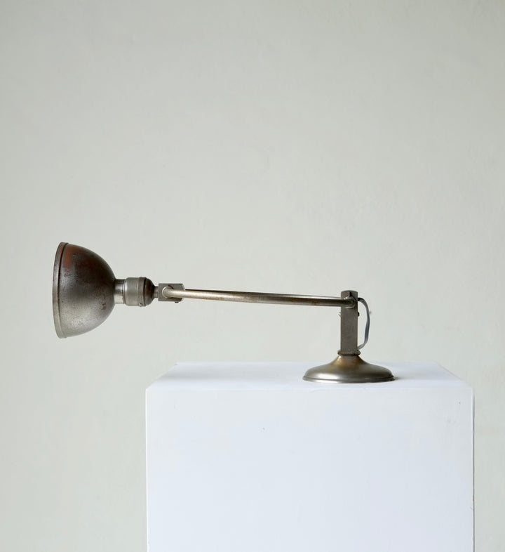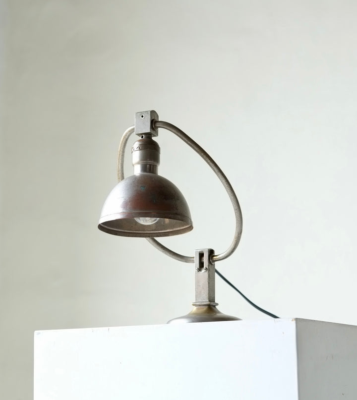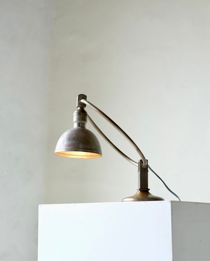 Metal desk lamp which can be adjusted to numerous positions.