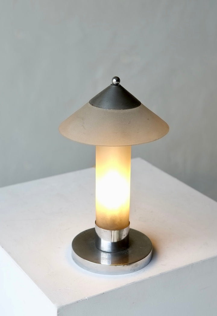 Frosted glass and chrome desk lamp by French designer Marc Erol.