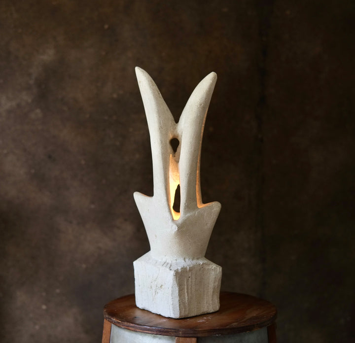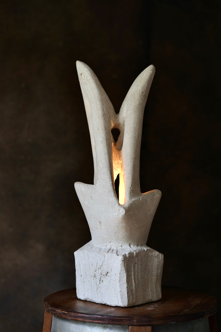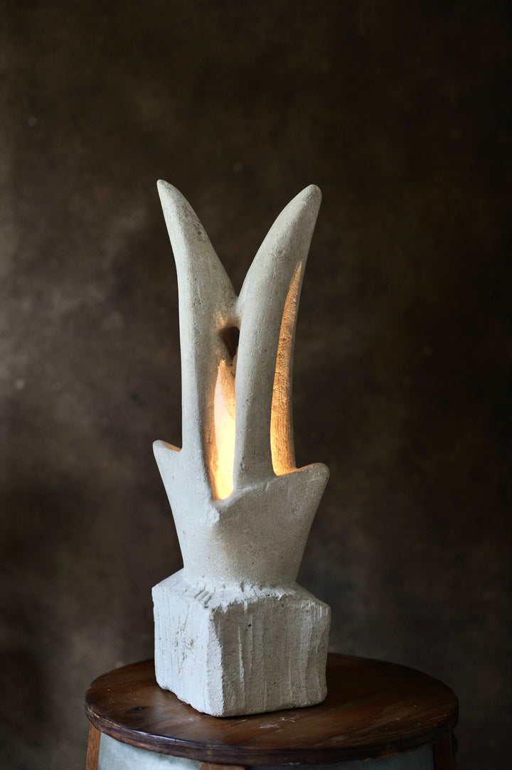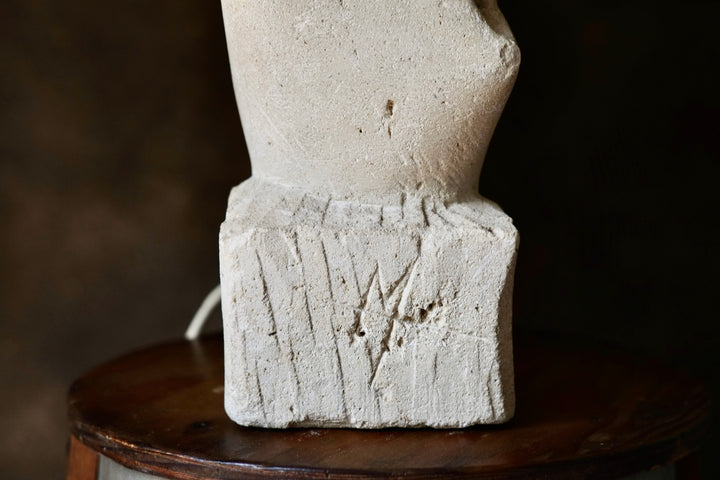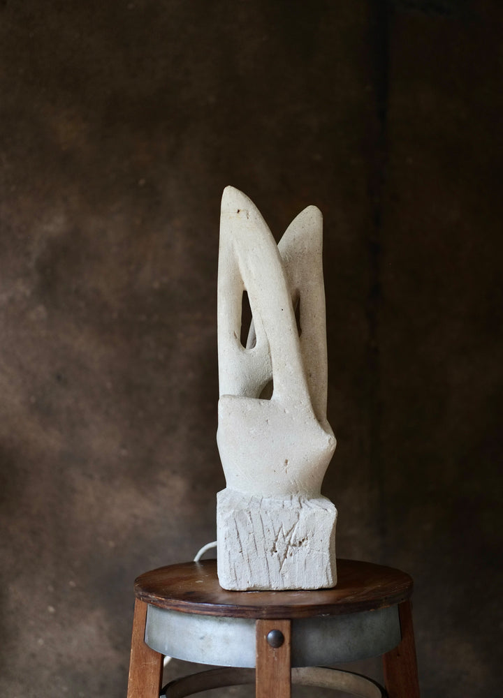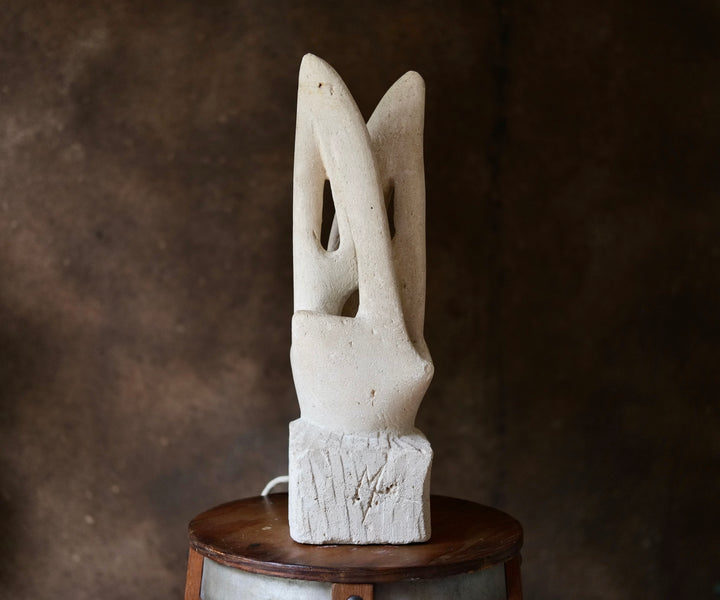 A French abstract carved stone lamp in the manner of Albert Tormos.