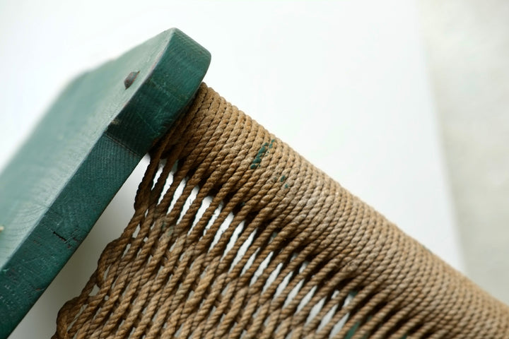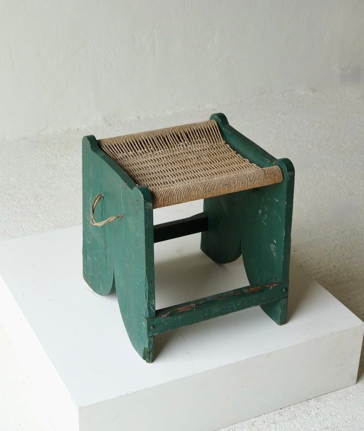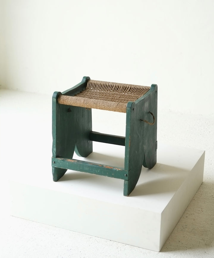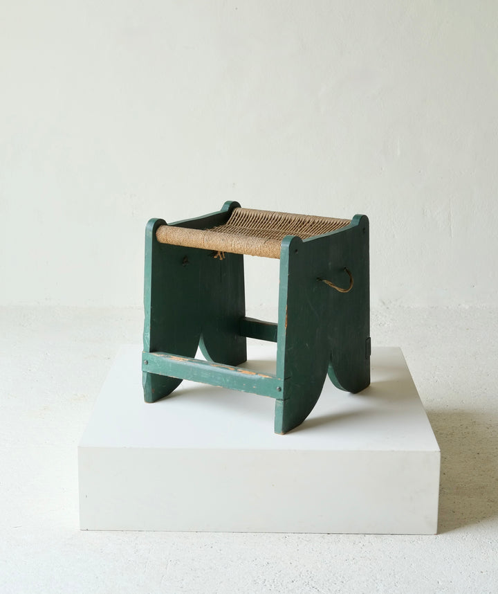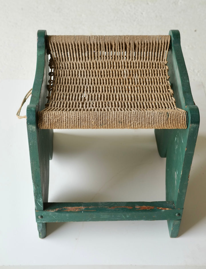A French early 20th century rope seat stool overpainted in green.