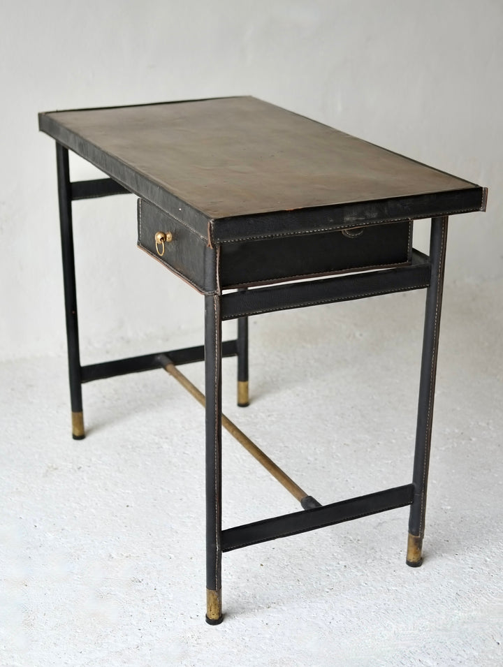 Leather Bound Desk Attributed To Jacques Adnet